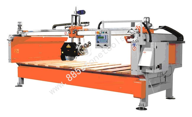 采用自动智能化控制,通过机头上下旋转可以实现切割、倒角、钻孔、磨边、开槽等多种功能,机头液压自动旋转90度,四柱导向,通过机头的左右90度旋转,可以实现桥切功能,前后移动采用直线导轨。可根据用户要求增加二维或三维电脑,实现切割异型的功能,集铣、磨、钻、抛光、锯加工工艺于一身,成为石材行业中的加工中心。